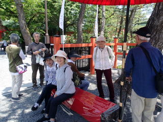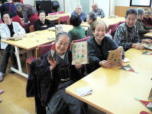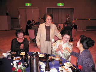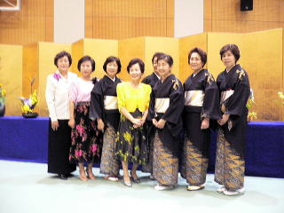 | 着物姿も美しい女性会の役員さんに囲まれて来賓の方々もにっこり・・・ | |
