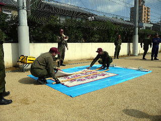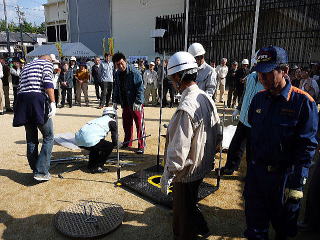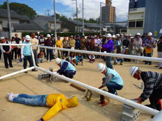 | 体育振興会担当の救出訓練と、少年補導によるアルファー米の使用方法の指導。 | |