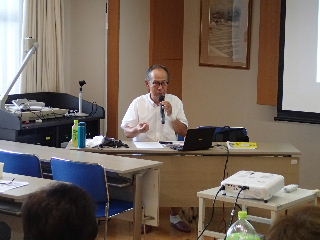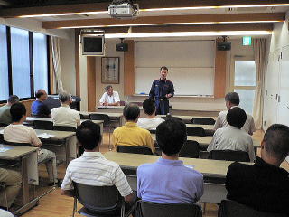 平成19年7月10日、北総合校生活学習室において市民スクール21を開催しました。今回は北総合支援学校の初代校長の林 賢三先生をお招きしました。林先生は平成17年に定年を前に引退され、海外支援隊として今年1月までモンゴルで障害児教育の指導をされてきました。その時の経験談や、モンゴルの人々の生活、子供の教育の現状等について詳しくお話していただきました。写真等もたくさん見せていただき、日本との生活習慣との違いなど興味深くまた、おもしろくお話していただきました。 |