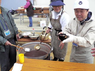 | 少年補導担当の炊き出し、給食・配布訓練 今年はおいしくてボリュームたっぷりの豚汁 |