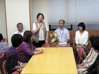 | 平成24年6月21日、北総合校生活学習室において市民スクール21を開催しました。今回は北総合校のPTAの方々にもご参加頂きました。 北総合支援学校で今年度から校長先生になられました江川正一先生をお招きし、北総合校大災害に対する取組みについてお話頂きました。 現在、学業時間には先生・生徒合せて400名程がおられます。生徒の中には介護が必要な障害があったり身体の弱い子も多数います。大きな災害が起こったときの備えについての学校としての取組みや考えを地域住民、PTAの方々と共に聞き、また、私たちも何をすべきか、何が協力できるか、共に勉強しました。 その後、お抹茶を頂き、飯田敬子先生指導によるフラワーアレンジメントを楽しみました。充実した勉強をすることができました。参加34名。 |