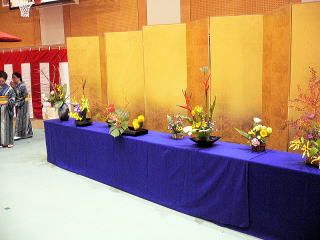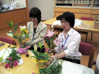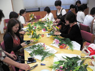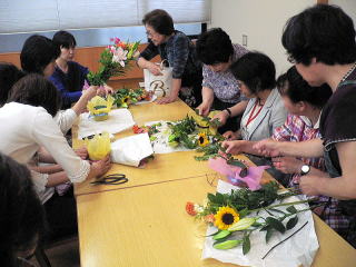 | 飯田敬子先生指導のフラワーアレンジメント、清野北総合PTA会長や 北総合校の先生方にもご参加頂きました。 |