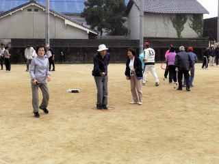 | 成逸ペタンク大会 平成24年5月20日、北総合校グランドにおいて成逸ペタンク大会を開催しました。ダブルス競技で抽選でペアを決め、好天の下和気あいあいと楽しみながらプレーしました。参加者14名。優勝は田村(勝)(七野社)・川田会長(竪社北)、2位は北村(上天神)・大石(竪社北)の各ペアーでした。 |