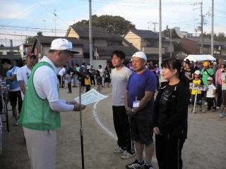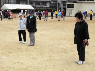 | 上京区ペタンク大会 平成24年5月6日、北総合校グランドにおいて上京区民ペタンク大会が開催されました。トリプルのみの競技で、27チームの参加がありました。成逸学区も3組出場し、清水・花咲・吉村組が3位、田村(八)・田村(勝)・大川組が5位、奥田(栄)・北村・寺川組が11位と健闘し3組とも京都市大会への出場権を得ました。 尚、優勝は出水体振チームでした。 |