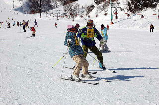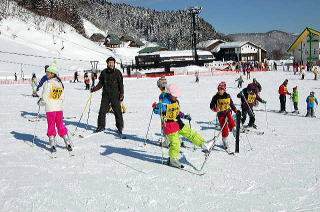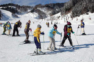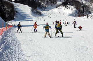 | 平成24年2月19日、恒例のスキー教室を今年も福井県今庄365スキー場で開催しました。参加者45名。 例年になく降雪の多い年となって、スキー場の積雪も2メートルを超えるほどになりました。この日も降雪を覚悟していましたが、幸いにも晴れて、道路にも積雪は無く、スムースにスキー場に着きました。スキー場の混雑も少なく講習や練習もしっかりとできました。 はじめのうちは、歩くこともままならない子どもたちでしたが、目に見えて上達していって、午後にはリフトに乗ってボーゲンで降りて来られるようになりました。参加者が少なく残念でしたが、バス1台でしたので、まとまりの有る行動がとれて、楽しいスキーツアーが出来ました。 |
