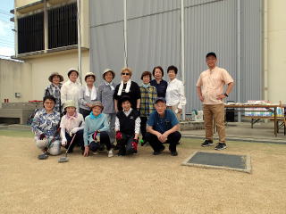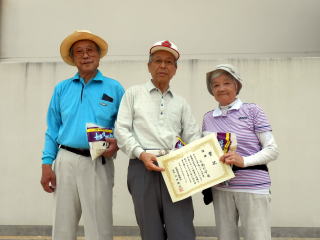 平成27年5月31日、北総合校グランドにおいて成逸グランドゴルフ大会を開催しました。グランドゴルフは性別や年齢にかかわらず誰でも気軽にできるスポーツとして近年大いに注目され、成逸ナイタースポーツにおいても毎回20名以上の参加があります。当日は曇り空で涼しくスポーツをするのにぴったりの天気で、皆で和気あいあいと4ラウンドの競技を楽しみました。 写真は表彰式で、中央が優勝の有隅さん(東若宮町)、向かって右が準優勝の段野さん(竪社北半町)、左が第3位の寺川さん(七野社町)でした。日頃より熱心に競技に取り組んでおられるお3方で、見事に実力を発揮されました。参加者27名。 |