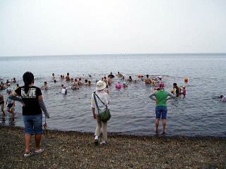 | 平成21年4月26日、4支部合同で三重県御殿場浜へ潮干狩りに行きました。御殿場浜は潮干狩りや夏の海水浴で大変賑わうところで、浜にはこれらのお客さんを相手にした浜茶屋が沢山軒を連ねています。 浜茶屋のおじさんに、貝の取れそうなところに案内してもらい、貝を掘りました。アサリやバカ貝が採れました。何個か大きなバカ貝が採れ、これは後で浜茶屋で焼いてもらって食べました。採れたてで大変おいしかったです。子供たちも楽しかったようで、また来年も来たいと言って喜んでいました。参加者70名。 |