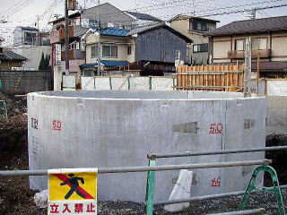 北総合養護学校グラウンドには防火水槽が埋設してあります。直径4〜5m在ろうかという巨大な、コンクリート製の水槽で100トンの水が貯蔵できます。大震災等の災害時を想定すると、学区民の大きな安心になろうかと思います。 |
