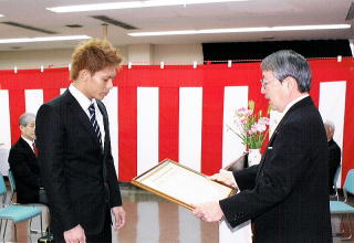 | 上京区スポーツ賞 船橋秀一氏(仲社町)が受賞 平成23年3月10日、仲社町の船橋俊一氏が平成22年度の上京区スポーツ賞を受賞されました。 上京区スポーツ賞は、スポーツの分野において得に優秀な成績を収め、多くの上京区民に熱い感動と大きな夢を与えた功績が顕著な者に対し上京区長から与えられるものです。 船橋氏は5月3日に開催された日本新空手道選手権中量級の部において全国優勝をされ、見事日本一位に輝かれました。船橋様おめでとうございます。 |
