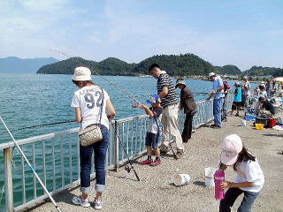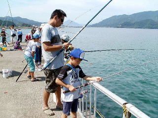 | 平成22年9月19日、若狭の鯉川で毎年恒例の魚釣り大会を開催しました。 3連休の中日と云うこともあって、釣り場はすでに多くの釣り人が来ていました。さっそく仕掛けをこしらえて、込み合った釣り場を確保しました。 サビキ釣りでアジを主体に考えていましたが、この日はサヨリが回遊して来ていて、急きょサヨリ仕掛けに変える人もいました。それでもときどきサビキにもかかってきました。全体にアジもサヨリも時々掛かる、といった程度の釣果でした。一日楽しんで、無事に帰ってきました。この日は天気も良くて、大変暑い日になりました。参加者46名。 |