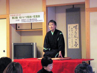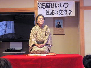 | 第2回せいいつ住まい交流会開催! 平成20年12月14日、町内会に入っている人も入ってない人も、地域のみんなで落語やフォークソングを聞きながら、そして軽い食事をしながら会話を楽しむ。そんなささやかなパーティを開催しました。この交流会をきっかけにご近所の皆さんが顔見知りになることによって、「笑顔で挨拶ができるまち」、「みんなが安心して暮らせるまち」、「いざというときに助け合えるまち」を目指します。 |