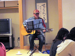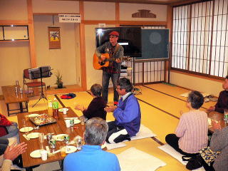 | “ケメコハウス”の澤田さんによるなつかしのフォークソング、参加者もいっしょにも楽しみました。 | |
