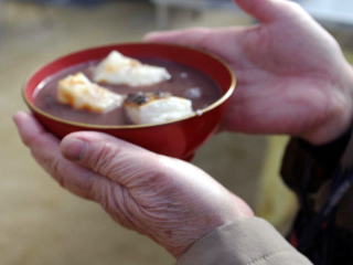 | 今回の交流会は少年補導の餅つき大会とコラボ。冷えた体をまずは温かいおぜんざいで・・・ | |