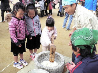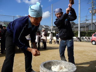 | 初年補導のもちつき大会とコラボしました・・・多数の家族連れで賑わいました。 | |