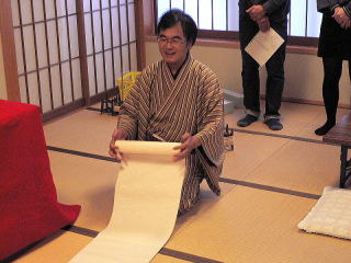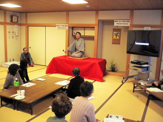 | 参加者の自己紹介のあと、まずは関大亭一八君の落語、NHK朝のテレビドラマで有名になった“ちりとてちん”を聞きました。アマチュアとはいえ落語歴30年以上のベテランだけあってプロ顔負けの話芸で大いに笑わせてくれました。そのあと軽食をまじえながら“ケメコはうす”の澤田好弘さんのフォークソングを聞きました。澤田さんといえば40〜50歳代にはケメコの歌等でなつかしの方で、思い出に浸りながらもみんなで盛り上がりました。 | |