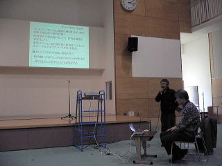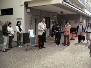 | 立命館石本ゼミの学生による開会挨拶、そのあと“せいいつまち歩き風景”の紹介 | |