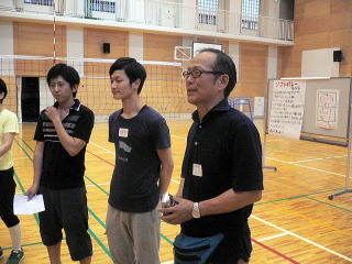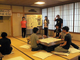 | 第6回せいいつ住まい交流会開催! 平成22年6月19日、第6回目の住まい交流会を開催しました。今回も就職活動で忙しい中を立命館大学の石本ゼミの学生諸君が企画してくれました。 今回は成逸方式によって最近町内会に準会員として加入されたワンルームマンションにお住まいの方々を対象に、スポーツを通しての交流や成逸夏祭りのお化け屋敷の実行委員の呼びかけをしました。 主な対象者がワンルームの学生ということで人集めに大変苦労しましたが大谷大学や同志社大学の学生数名が参加してくれました。まず、北総合校の体育館でソフトバレーボールを試合形式で楽しみ、その後成逸会館で夏祭りのお化け屋敷をいっしょに企画しましょうとワークショップで意見を出し合いました。ソフトバレーでは地域のチームも参加しました。 8月7日の成逸ふれあい祭りでのお化け屋敷がどんな楽しい企画になるか今から楽しみです。 |