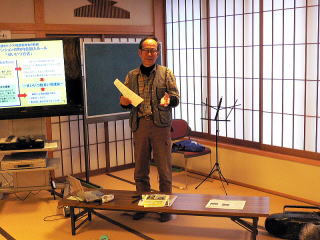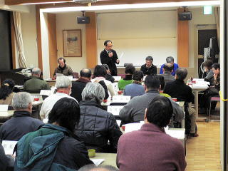 | 『防災のまちづくり 成逸』 石本幸良先生 講演会開催 平成24年2月28日、防災講演会を開催しました。成逸学区におきましては平成20年に大災害時の避難所運営マニュアルを作成し、それを実践する形で防災訓練を実施、また、アンケートを取る等、地域防災力の向上に取り組んでいますが、昨年来の東北の大震災や台風による大災害が想定外の規模で発生しており、成逸の避難所マニュアルに付きましても見直し等、より進化させることが求められています。今回の講演会ではマニュアル作成に多大のお力添えを頂きました石本幸良先生(まちづくりアドバイザー、地域計画建築研究所アルパック)に防災訓練の検証、アンケート調査の報告等を交えてご講演いただきました。成逸の先進的な取り組みについてあらためて地域住民の方々にお話いただき常日頃の備え、心構えが如何に大切かを学びました。参加者55名。 |