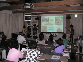 ゼミ生によるせいいつクイズ。正解者には記念品ということで皆さんがんばりました。ちょっと問題が簡単すぎたみたいで・・・ この後、成逸会館で懇親会、いつものように交流を深めました。ただ石本先生が体調を崩され参加できなかったのが残念な思いでいっぱいです。 |