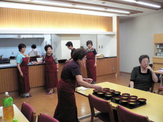 | みんなで軽食を取りながらの交流 | 女性会にもチラシ寿司やお吸い物を作ってもらいました |