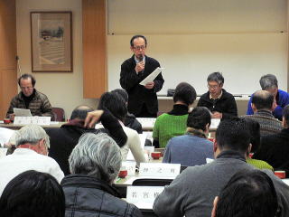 | 小森会長の開会の挨拶とまちづくりアドバイザーの石本先生の趣旨説明。 | |